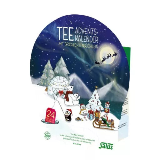 Verkürzen Sie die Wartezeit auf Weihnachten mit 24 besinnlichen Tee-Genussmomenten. Die Auswahl an Kräuter-, Früchte-, Gewürz- und Grünem Tee ist natürlich in Bio-Qualität, wird in Bruckmühl/Oberbayern regional produziert und verzaubert in vorweihnachtliche Stimmung!Genießen Sie die Vielfalt der Salus Tees und entdecken Sie Ihren persönlichen Lieblingstee. Jedem Tee-Adventskalender liegt ein kleines Geschichtenbüchlein bei.Die Tee-Adventskalender werden jedes Jahr per Hand mit ganz viel Sorgfalt und Freude in den regionalen Eglhartinger Werkstätten gepackt, einer anerkannten Werkstattfür Menschen mit Behinderung.Salus wünscht Ihnen frohe Weihnachten!