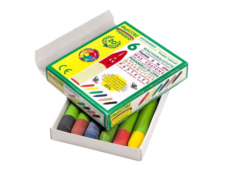 Mit den ÖkoNORM Wachsmalstiften lassen sich kleine Kunstwerke anfertigen. Nawaro steht für nachwachsende, natürliche Rohstoffe, denn genau daraus sind die Kreiden hergestellt. Mit einem 25 %-Anteil an 100 % Bienenwachs. Die Farben der Wachsmalstifte sind lebensmittelecht und haben eine hohe Deckkraft. Schmale Form speziell für größere Kinder. Länge 8 cm. 1 Pack. = 6 Stk. Farbig.